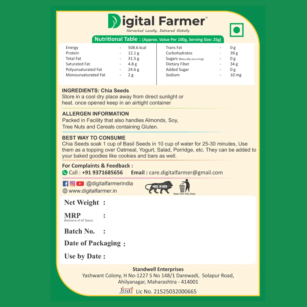 • CALCIUM RICH: Strengthen your bones and muscles with Calcium-rich Chia Seeds