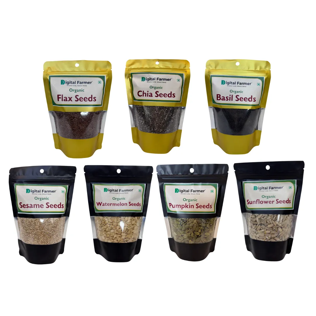 Experience complete nutrition with Digital Farmer Edible Seeds Combo 1400g – a thoughtfully curated blend of 200g each of sunflower, watermelon, pumpkin, sesame, basil, chia, and flax seeds. This nutrient-packed superfood mix is a rich source of plant-based protein, dietary fiber, healthy fats, omega-3 fatty acids, and essential minerals that support digestion, heart health, immunity, and energy levels. Whether you add it to smoothies, cereals, salads, or baked recipes, this combo offers a convenient way to enrich your meals with wholesome goodness. Free from additives and artificial flavors, it’s an all-natural choice for health-conscious individuals seeking balanced nutrition.